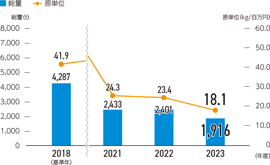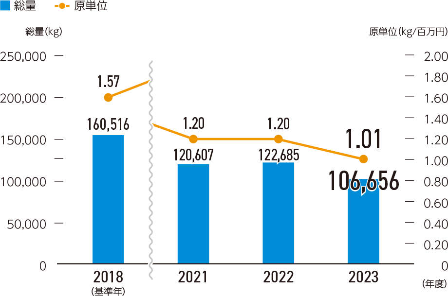 廃棄物量と原単位(国内グループ+海外グループ)