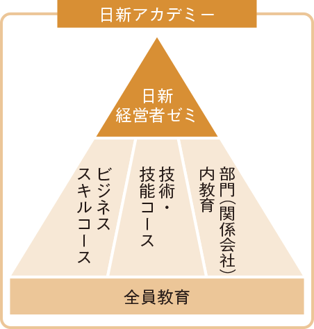 当社グループでは、社員の働きがいを高めるとともに、社会に貢献できる人間的成長を支援することを目的とした教育・研修体系「日新アカデミー」を開設しています。
