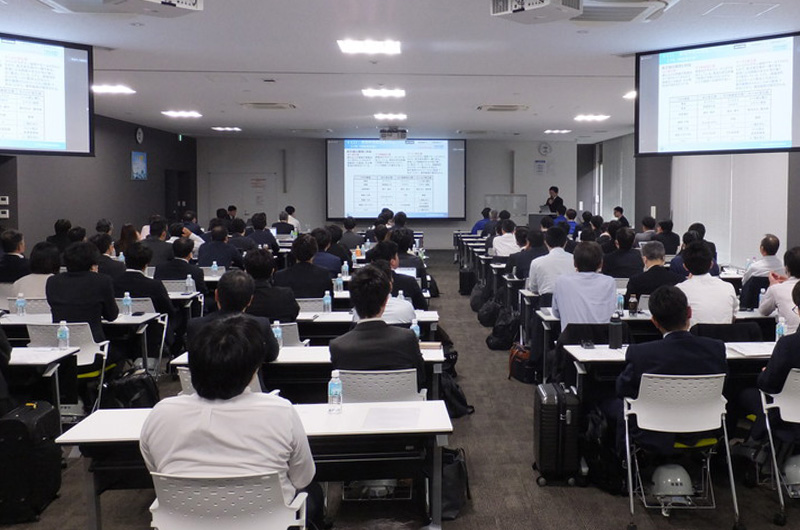 ビジネスパートナーである販売店や協力企業各社の営業パーソンの皆様を対象に、当社製品・技術に関する知識や理解を深めて営業活動に役立てていただくため、当社グループ社員が講師となって解説する「日新電機グループ 営業技術セミナー」を開催しています。