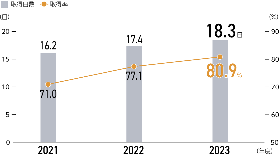 当社では、2014年度から「スマート活動」として生産性の向上、メリハリのある働き方のための各種制度を実施してきました。2020年度には「仕事と生活の両立支援ガイドライン」を作成して、多様な働き方・ダイバーシティを認め合う風土づくりにより一層注力し、また、2022年度からはSDGs推進におけるマテリアリティの一つに「多様性を尊重した安全で働きやすい職場への変革」を定めて、社員一人ひとりの多様性が尊重され、自らの能力を最大限に活かすことができる、働きがいを実感できる働きやすい職場環境づくりを進めています。