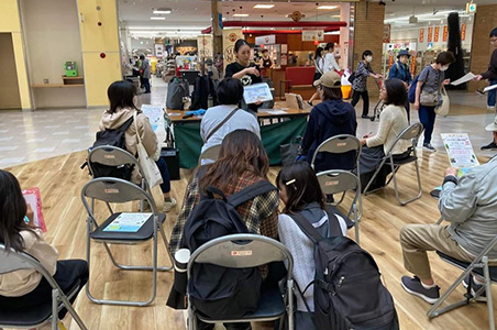 京都府の「仕事と育児の両立体験プログラム(学生が人生設計を考える機会づくり)」に協力し、両立の実例や制度を紹介しています。