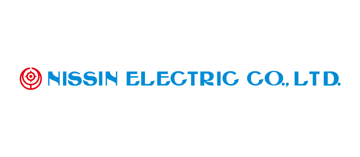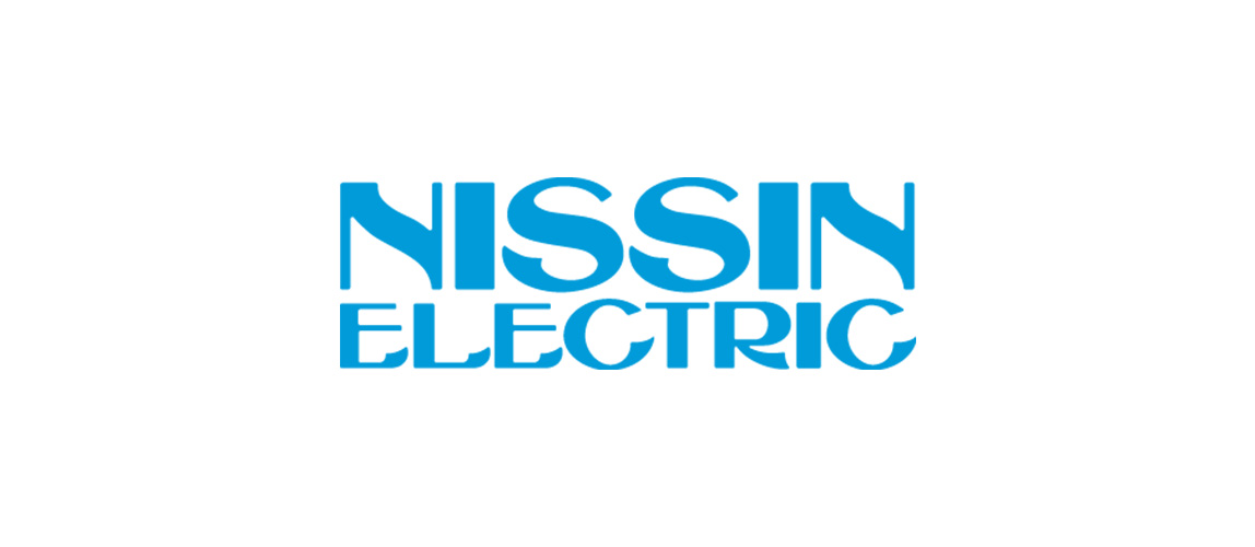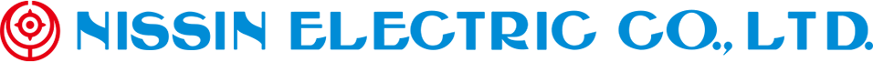 The company logo of Nissin Electric uses its original font for the company name in vivid blue, the corporate color.