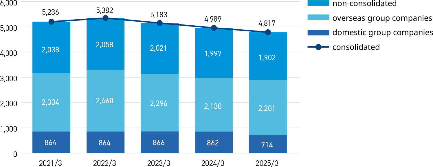 4,817(As of end of March 2025, consolidated) 1,902(As of end of March 2025, non-consolidated) ![]() |