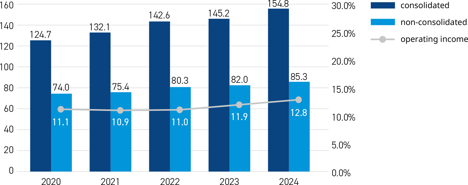 154.8 (FY3/ 2024, Unit: Billion yen)