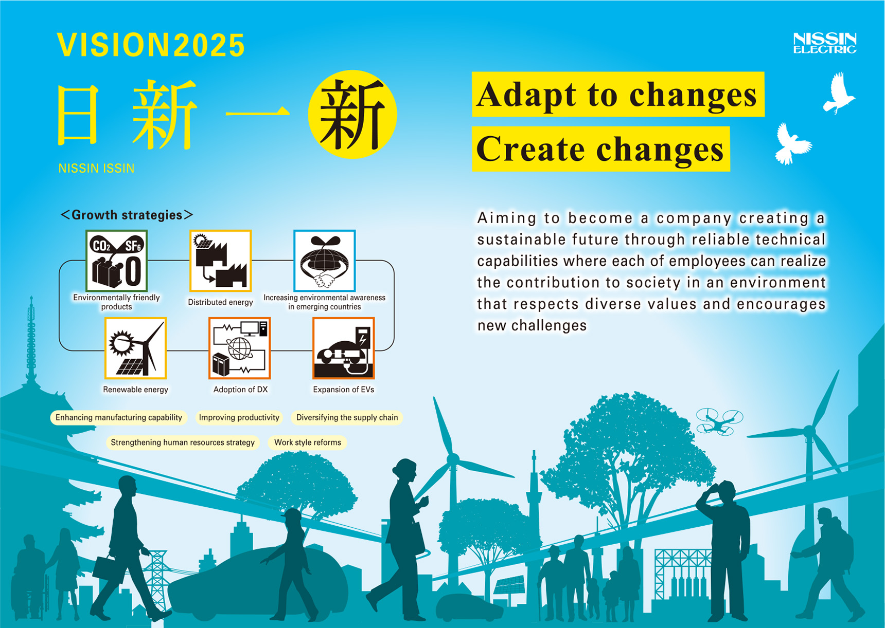 Nissin Electric Co., Ltd. has formulated the Nissin Electric Group Medium-to-Long-Term Business Plan “VISION2025” for the five years from fiscal 2021 to 2025.