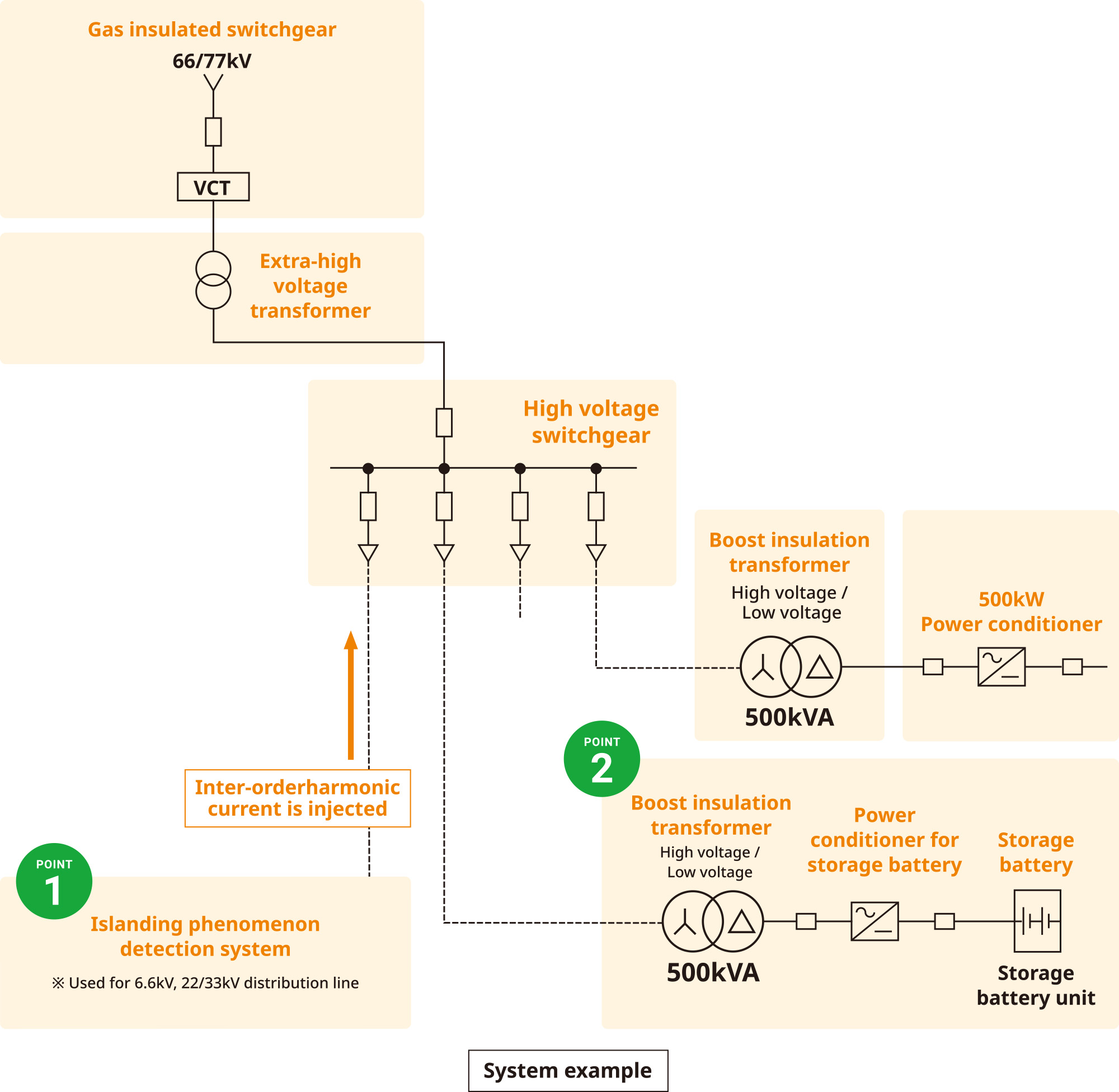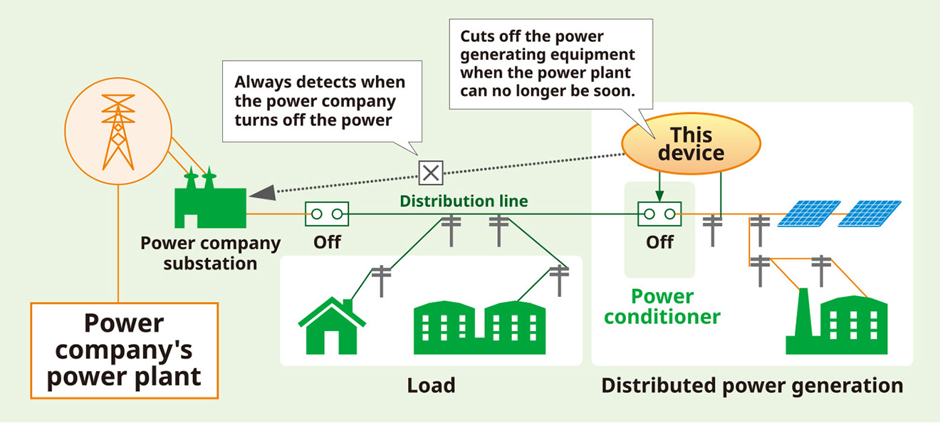 This minimizes the influence on the grid. Grid connection can be protected even if multiple dispersed energy resources are installed. Islanding phenomenon can be detected quickly (in about one second) for any kind of dispersed energy resources.
