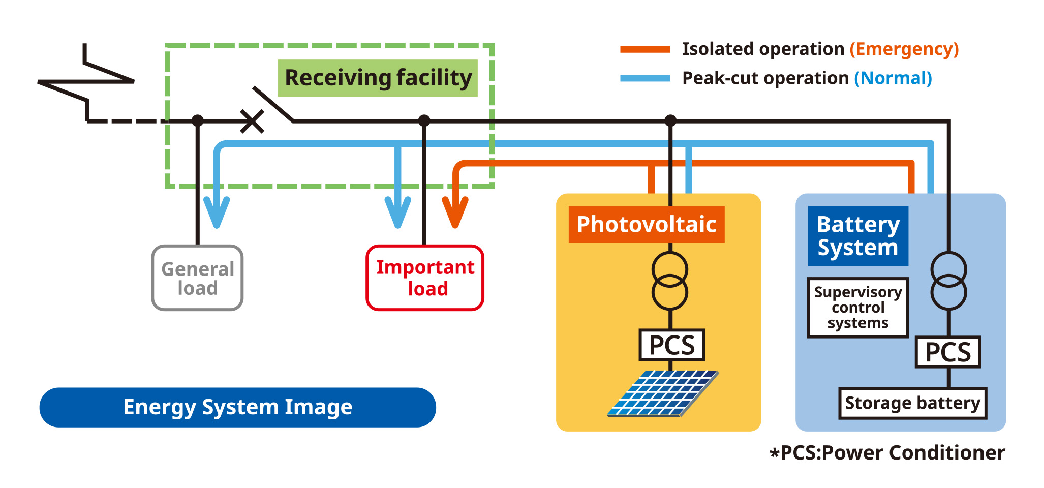 Storage battery systems must be built and operated (controlled) for respective applications. We offer a one-stop service from examination of the system specifications, design, construction to follow-up services. We have a track record in delivering power conditioners for storage batteries. Our power conditioners have been used with lead-acid batteries, redox flow batteries, NAS® batteries, lithium-ion batteries, and Ni-MH batteries. We propose optimal storage batteries based on the customers’ requests, applications, or use conditions.