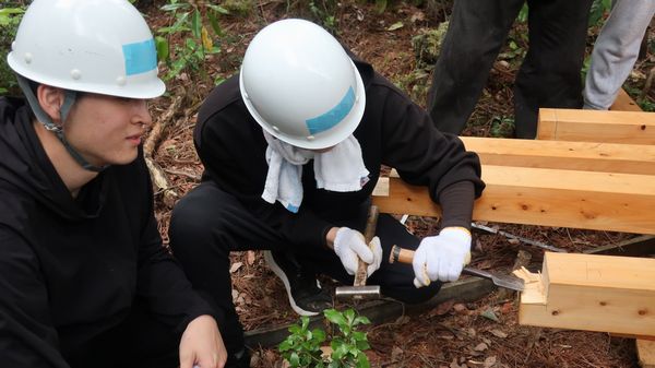 2025年5月の活動では、展望台の修復では地元工務店の方の協力のもと、木材の加工や柱の補強作業などの大工仕事も社員の手で実施。